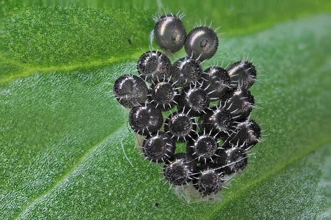 La Chrysopidae est une famille de névroptères. Attention ça ne veut pas dire qu’ils sont en pleine névrose (Freud a assez mal exploré le concept de névrose dans le mon des insectes). Son petit truc à lui c’est de faire ce qu’on appelle des œufs pétiolés, c’est à dire qu’ils sont pondus sur une feuille et pendouillent bêtement dans le vide en attendant d’éclore.