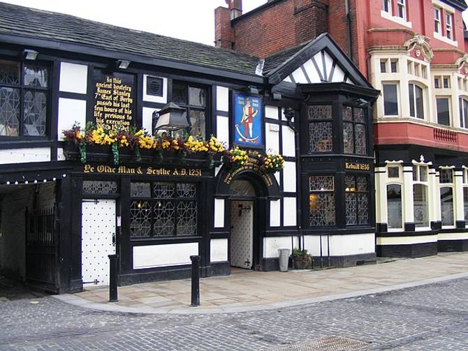 La preuve que Ye Olde Man & Scythe est vieux ? Bah déjà son nom commence par Ye et pas par The. La première trace écrite de son existence date de 1251. C’est là que James Stanley, responsable du massacre de Bolton, survenu le 28 mai 1644, a été tué.