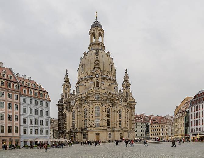 En 1945, les Alliés ont bombardé Dresde dans tous les sens et en ont détruit la majeure partie, dont cette église au style baroque construite en 1743. Pour le coup, il ne restait quasiment rien du bâtiment, mais, de 1994 à 2005, il a été remis sur pied bien comme il faut. Quand on voit le résultat, on se dit que c'était pas une mauvaise idée.