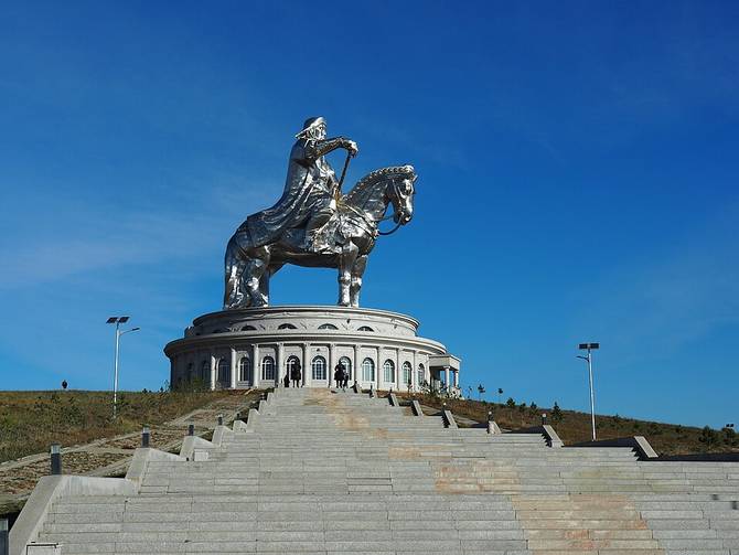 Contrairement à son cousin, Dominique Strauss. Le plus grand guerrier de tous les temps (du moins pour les Mongols) est une figure vénérée dans le pays. Il suffit de voir la statue équestre monumentale à son effigie à 50 bornes d’Oulan Bator.