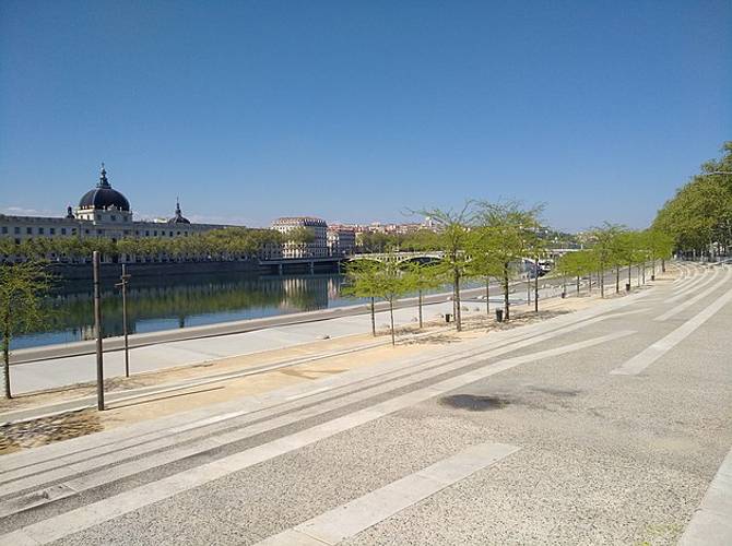 Comme leur nom l’indique ce sont les multiples voies qui longent le Rhône à Lyon. Eh bien figurez-vous que depuis 2005 les voitures en sont exclues et les travaux d’aménagement permettent un accès au parc Saint-Clair et à la passerelle de la Cité Internationale.