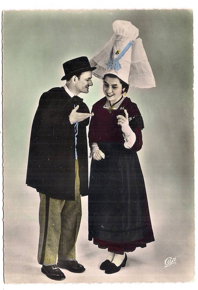 Quand on parle « costumes traditionnels », on pense « chapeaux ronds » et « Bigouden ». Le Breton n'est pas très funky et mise sur des compositions de blanc et de noir, enfin… surtout de noir en fait.