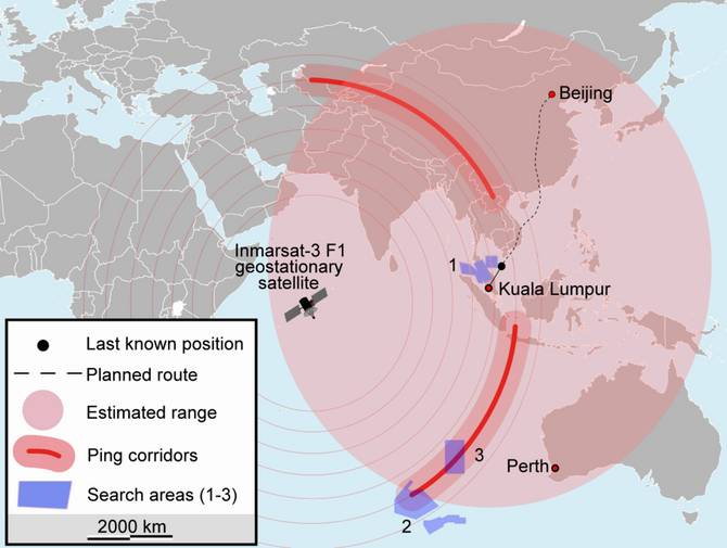 Le lieu de disparition du vol Malaysia Airlines 370