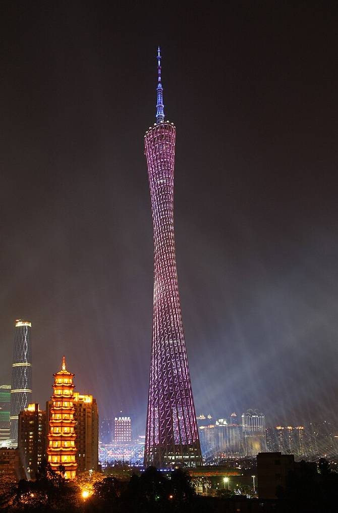 Ouverte en novembre 2010 pour les Jeux asiatiques, cette tour en forme hyperboloïde brille tellement qu’on dirait du strass.