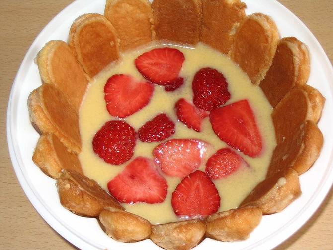 On n'est pas trop sûr de l'origine de cette pâtisserie, mais tout indique (pardon… wikipedia indique) que ce truc fut créé en l'honneur de Charlotte de Mecklembourg-Strelitz, l'épouse du roi George III qui a régné sur le Royaume-Uni de 1760 à 1820. Pour le nom du chapeau des dames de la cantine, on ne saurait pas trop vous dire.