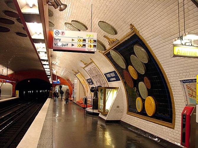 Des énormes pièces qui dessinent un chemin d’un quai à l’autre, en passant par la voûte. Pourquoi, nous diras-tu ? Because l’Hôtel de la Monnaie tout proche, te répondrons-nous. Tu peux y voir aussi un balancier monétaire et des vraies pièces exposées en vitrine, mais non, tu ne peux pas t’en servir pour prendre un Coca à la machine.