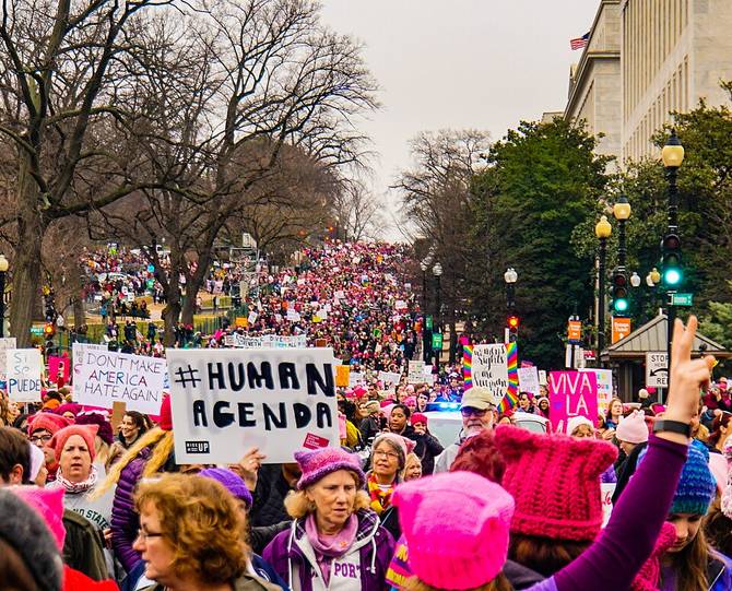 La gigantesque Women's March a impressionné au lendemain de l'investiture de Trump qui avait quant-à elle peiné à rassembler son public. Elle a eu lieu à Washington notamment, où 500 000 personnes ont défilé dans la rue ainsi que dans d'autres villes des États-Unis et du monde. Droits des femmes, droit LGBT, inégalités raciales, les sujets étaient nombreux et la manifestation n'a pas manqué d'être immédiatement raillée par Trump sur Twitter.