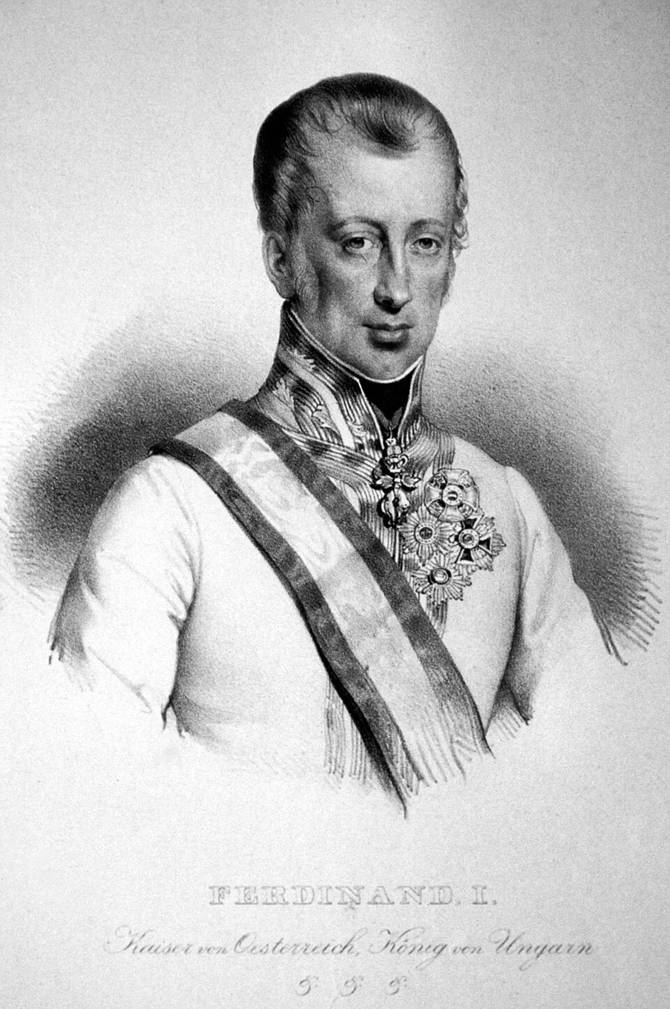 Son père et sa mère étaient cousins : résultat, Ferdinand, né en 1793, avait le crâne rempli d’eau, ce qui entrava son développement cognitif. Vu qu’il descendait pour partie des Habsbourg, il présentait aussi ce problème de langue qu’on retrouvait chez Charles II et bavait sans discontinuer. Mais que voulez-vous ? Quand on doit régner, on règne. Ferdinand, lui, a été à la tête de l’Empire d’Autriche pendant 18 ans.