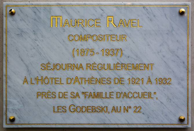 Petit plus culture gé : le compositeur Maurice Ravel a régulièrement séjourné à l'Hôtel d'Athènes. C'pas moi qui le dis, c'est la plaque. Juste en dessous.