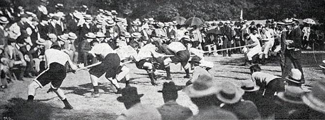 Disparu du programme olympique en 1924, le tir à la corde consistait donc à faire s’affronter deux équipes de 6 personnes autour d’une corde. On tirait et l’équipe qui faisait tomber l’autre gagnait. Une épreuve de force complètement conne, donc, qui devait faire super mal aux mains, et qui existe de fait encore un peu en Asie mais qui n’a plus de dimension olympique. Bon au moins, ça ne fait pas partie des sports les plus chers.