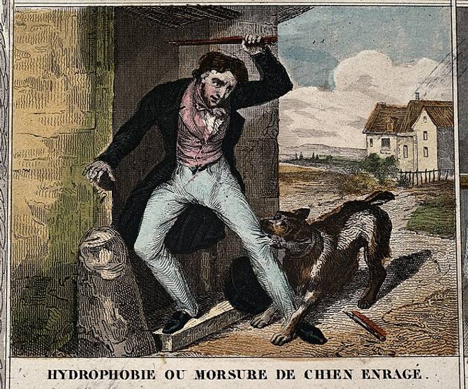 La rage est une maladie transmise essentiellement par les animaux, et plus précisément par leur salive. En gros, un animal (le plus souvent un chien, mais ça peut aussi être une chauve-souris) vous mord, et sa salive vous contamine en entrant en contact avec votre sang. Dans l’absolu, ça pourrait aussi marcher d’un humain à un autre, mais en pratique ça n’arrive quasiment pas. N’empêche, tout ça donne un côté « contamination zombie » pas hyper joyeux, et les symptômes vont aussi dans ce sens (on vous en parle un peu plus bas).